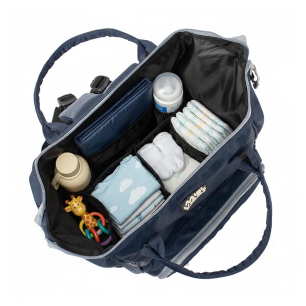 - تنظيم مثالي: تتيح الجيوب المتعددة ترتيب مستلزمات الطفل بشكل منظم، مما يوفر وقتك وجهدك عند البحث عن أي غرض.